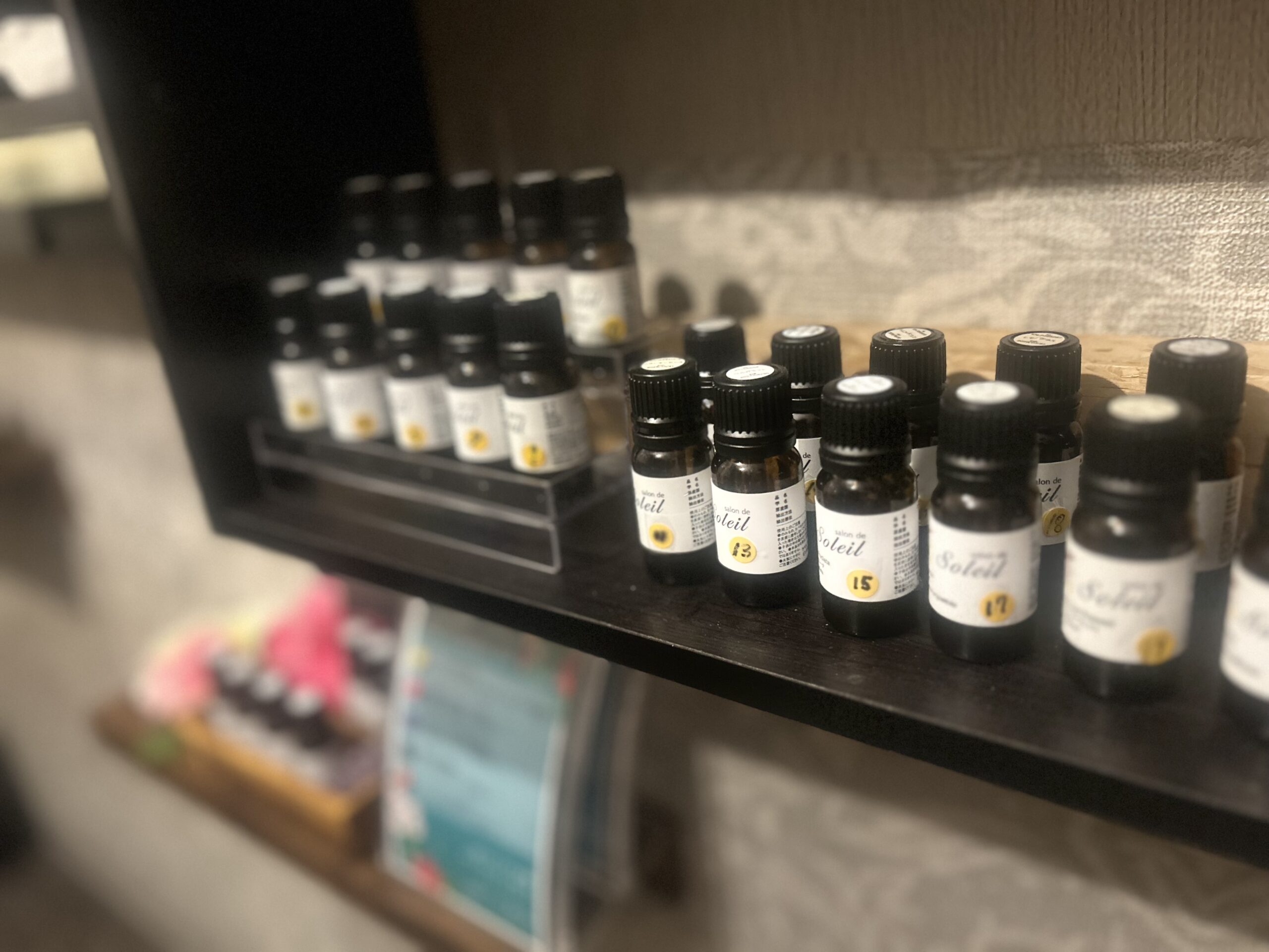 当店はお客様にアロマの香りを楽しみながらマッサージを受けてもらいたいと考えており、常時30種類以上の香りを取り揃えております☺️